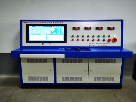 靜態(tài)及爆破水壓測(cè)試裝置:由海普壓力測(cè)試系統(tǒng)、琴架式操作臺(tái)、電氣控制柜、電動(dòng)高壓泵、控制閥匯、低壓強(qiáng)制進(jìn)水過濾裝置、不銹鋼水箱、電動(dòng)節(jié)流裝置、高壓蓄能器、流量計(jì)、集成箱體等組成,系統(tǒng)自動(dòng)完成升壓、保壓、卸壓過程,現(xiàn)場實(shí)時(shí)出具壓力曲線報(bào)表,完整記錄整個(gè)水密封實(shí)驗(yàn)過程。同時(shí)該裝置也可用于其它各類工件、閥門、鋼瓶、消防器材等作水密封耐壓試驗(yàn)。
